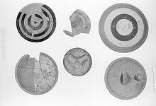 Description:   Complete, mended from many fragments. Slight traces of burning inside.