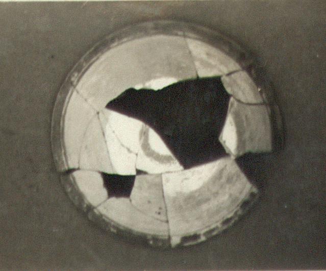 | Description: | Mended from many fragments. About one third missing. Another piece found and added. Attachment of central strap preserved. Traces of burning after breakage. High convex shape. Hand strap near margin. Red margin; blue, white and yellow concentric bands round white center. The yellow band is narrow, and painted over the white. Pinkish buff clay. | |