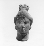 | Description: | Broken below neck. Chip missing from forehead and right eye. Large tuft of hair at top of head at front. Earrings in ears. Traces of white on face and neck; of red on tuft. | |