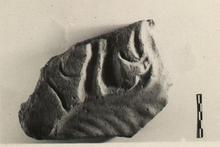 | Description: | No original edge preserved. Uncertain representation; possibly for architectural ornament. Flat back. Light gray buff clay, with bits in it. ADDENDA: C. Grandjouan: large animal predator with objects behind it. | |