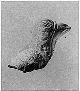 | Description: | A large dove. Head and part of right wing preserved. Gouged details. Remains of added red and yellow. Red clay. | |