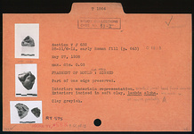 | Description: | Part of one edge preserved. Interior: uncertain representation. Exterior: incised in soft clay the letter lambda (Λ) or alpha (A). Clay grayish. ADDENDA: C. Grandjouan: wreathed jovial head found when cast was made. More probably the letter alpha (A) incised on the exterior. | |