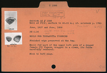| Description: | Mold for part of the upper left side of a figure. Finished edge preserved at the top. Figure wrapped in a cloak, its folds carefully rendered. Pink to buff clay. | |