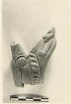| Description: | Fragment from mid-part of figure, holding a child in right arm. Gouged style. No color. Light red clay. | |