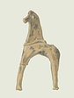 | Description: | Large collared horse, which is part of a chariot group. Right front leg missing. No tail. Mended from four fragments. On the back, behind the collar, a broken surface: rider, or additional harness (?). Painted blue with traces of red paint on chest (bridle ?) and legs; also of white (?) Pinkish buff clay. The horse belongs to a group standing on a base. It fits on the irregular base which shows traces of attachment for four horses. (Traces underneath of its having rested on a roughly planed wooden surface). The absence of a tail and the presence of red paint at the back suggests that there was a chariot. (Cf. T 420). One foreleg restored in plaster, and the horse fitted to its base, together with T 200 (5-10-1933). | |