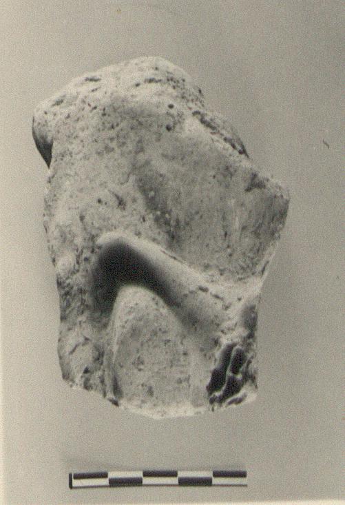 | Description: | Fragment from a heavy mould. Back preserved, edges broken. Uncertain representation. Coarse clay, surfaced with finer. ADDENDA: C. Grandjouan: Animal combat: lion of griffin attacks herbivore. | |