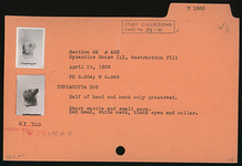 | Description: | Half of head and neck only preserved. Short muzzle and small ears. Red head, white neck, black eyes and collar. | |