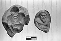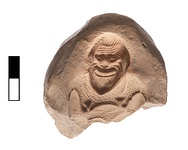 | Description: | The upper part of a mold for a bearded figure with mask-like head, wearing a speckled garment (Papposilenus). He is bending forward and clasping some object (wine-skin ?). Careful work. Fine pinkish clay. Publication: before 350 B.C. Cf. Dimitrakopoulou (2024), no. A224, pp. 256-257, fig. 54. | |