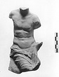 Description:   Two large joining fragments of mold for a figure draped to the waist, nude above.