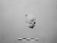 Chin preserved; back of neck broken away. Head in very good condition except for slight scratching.