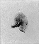 Moulded, hollow behind, but joint surface where it joined the right vertical half is preserved. Eye and bill sketchily formed by mould; no trace of incision or re-working after removal from mould.
