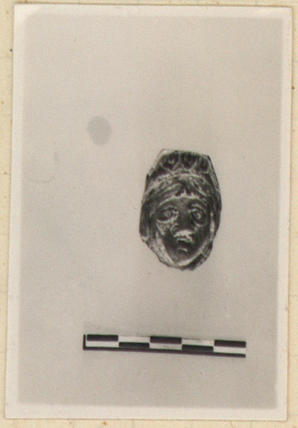 | Description: | Broken behind and at neck. Almost no modelling. Remains of red on hair, white on flesh and black for eyebrows and outlines of eyes. | |