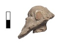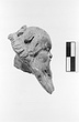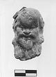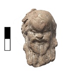 | Description: | Head of a bald bearded satyr. Broken off at neck. Left ear broken off. Very big ears. traces of wreath in front of head, which was turned up (or satyr was squatting and looking forward). Traces of white sizing on face and beard. ADDENDA: Gray-burned buff clay. | |