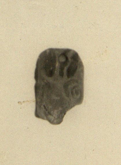 | Description: | Upper front part of rabbit (?). Perforated hole between ears. Mould-made; details gouged out. Light brick red clay, buff at surface. Same mold as T 3354. | |