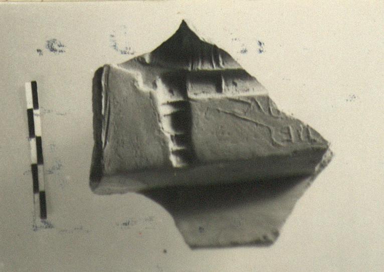 | Context: | Burnt layer in front of retaining wall of Middle Stoa. Second fragment joining, found in Section Z, N.W. corner of Middle Stoa, burnt debris inside terrace retaining wall. | |