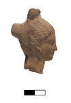Earrings. Hair indicated by straight and crosswise grooves and ridges.