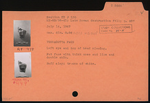 | Description: | Fat face with thick nose and lips and douple chin. Left eye and top of head missing. Traces of white. Buff clay. | |