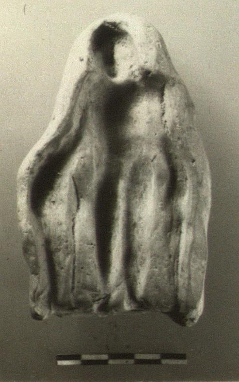 | Description: | Mold for the front part of a nude standing youth, arms hanging by sides and holding drapery (?). Complete. The mold much worn and rather indistinct in detail. ADDENDA Cf. Higgins (1967), Greek Terracottas, pp. 67-68, no. 1717, pl. 42. | |