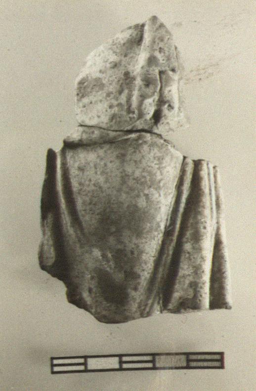 Description:   Fragment from central part of draped figurine showing overfold and thigh.