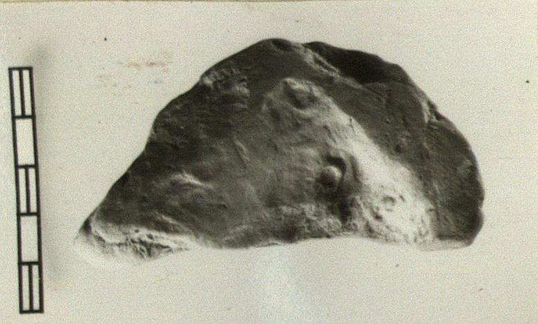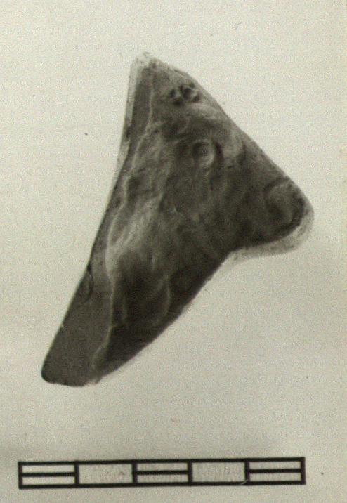 | Description: | A bull's head, to right in positive. Broken on one side. Back rounded; worn. Soft red clay. | |