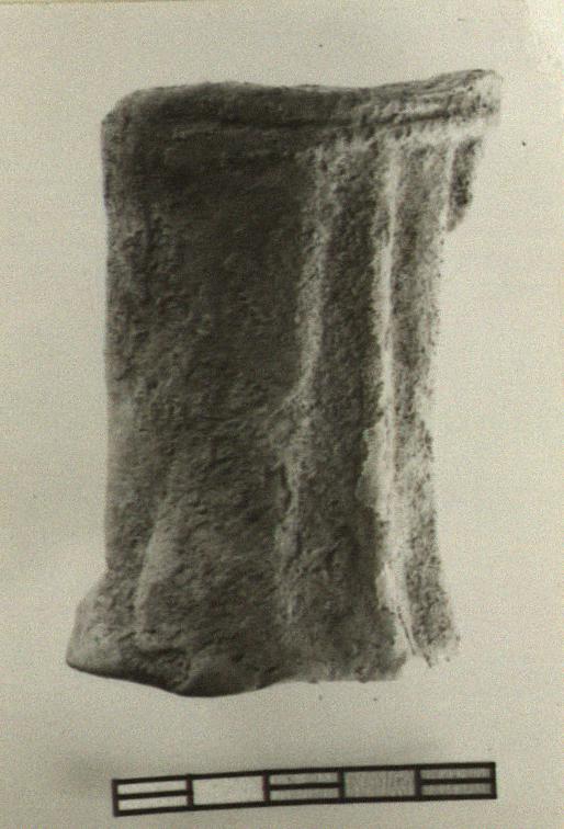 | Description: | Two fragments from the lower part of draped woman: Fragment a), the front. Fragment b), the back from the same or a similar figure. Left foot with forked shoe protrudes from drapery. Smooth inside; very thick fabric. Buff gritty clay. | |