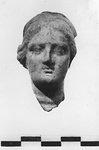 | Description: | Head. The back of the neck and of the head at the left side are broken. The hair is part at the middle, brought down over the ears and rolled towards the back. The hair appears to be bound by a band. The face is small and oval with straight brows, partially opened eyes and nicely shaped straight nose; small mouth; oval chin. Traces of white paint in the hair. Mold made; hollow. Buff clay. | |