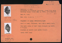 | Context: | Northeast of circular Building, loose fill with working chips; first box, group H 23. | |