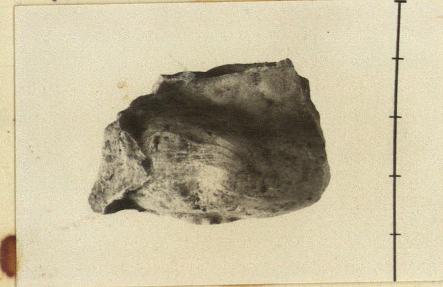 | Description: | Plump leg of child riding on something: scales dolphin (?). Only right thigh and calf and part of the animal (?) on which child rides, remain. Traces of paint (?). Coarse gray-brown clay. ADDENDA Other terracottas and lamp fragments from the same fill kept with pottery in storage container. | |