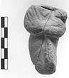 | Description: | Standing draped female figure with cloak pulled close over right arm and hanging loose under left arm. In crook of left arm a swaddled infant. Two joining fragments. Broken about at knees; head lost. Traces of white slip; mould-made in two pieces. Buff clay. | |
