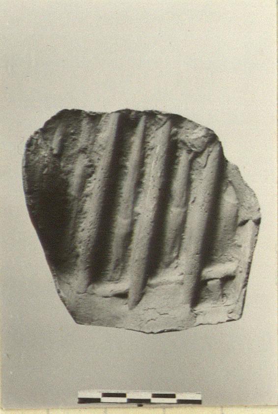 | Description: | Preserves part of hem (?) of drapery, with four major folds remaining. Broken all around. Cf. A 99, T 3660. ADDENDA Later found to be oars and part of hull of boat. | |