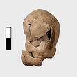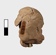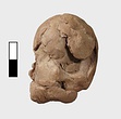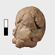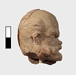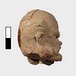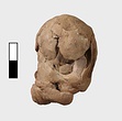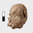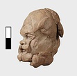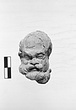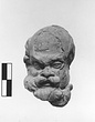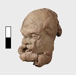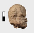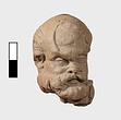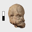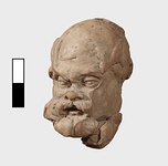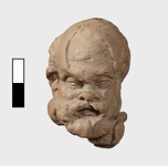 | Description: | Bearded, bald head. Chips missing from brow, beard, left cheek, and back of head. No trace of attachment ot body. Handmade, but skilfully deeply modelled with engraving tool. No certain traces of paint or glaze. Clay buff to russet. ADDENDA: Head of Silen or Sokrates. Eyeballs modelled. | |