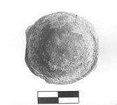 | Description: | A round shield, covered with white slip and cream paint, broken off from left side of a figure of which a tiny bit is preserved. Sharp cuts and fabric as preceding T 3171 (EE 561) white slip has washed over, inside. Probably from soldier (?). Cf. T 3171. Cf. Hesperia 43 (1974). | |