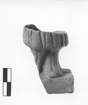 | Description: | Lower part of draped figure wearing a garment hanging in straight folds to well above the ankles, and high boots laced up the front. Rectangular base. Perhaps Artemis (?). A few traces of white. Pinkish clay. ADDENDA 1953, DBT: This fragment was originally numbered T 2074 b; but was later determined not to belong. | |