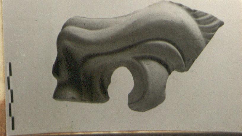 | Description: | A piece from life size mask preserving left eye and eyebrow and part of nose. Broken all around. Yellow-buff clay. | |