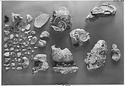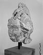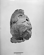 | Description: | Mended from many pieces. Surface greatly damaged and in many places entirely gone leaving a yellow-greenish core with small dark pits in it. Nose, part of upper lip, lower part of face including the beard, cheek-pieces, front part of helmet over forehead, most of the base of the crest, greater part of the left side, pieces from the neck-piece missing. Very little of beard and moustaches left. Eyebrow, eyelashes, pupil, iris in light brown paint. The background of the helmet is covered with the same colors, except of one Pegasus on each side and a reserved band at its lower edge on the neck. Maender on the base of crest. Two holes on the right cheek and part of another on the left show where the cheek-pieces were attached. A small piece of clay above the nose near the left eyebrow suggests that there was probably a piece of the helmet coming down over the nose, a rather unusual feature for the Attic helmet. The helmet came down low over the eye brows. Excellently finished surface of ivory color. Cf. T 3282. | |