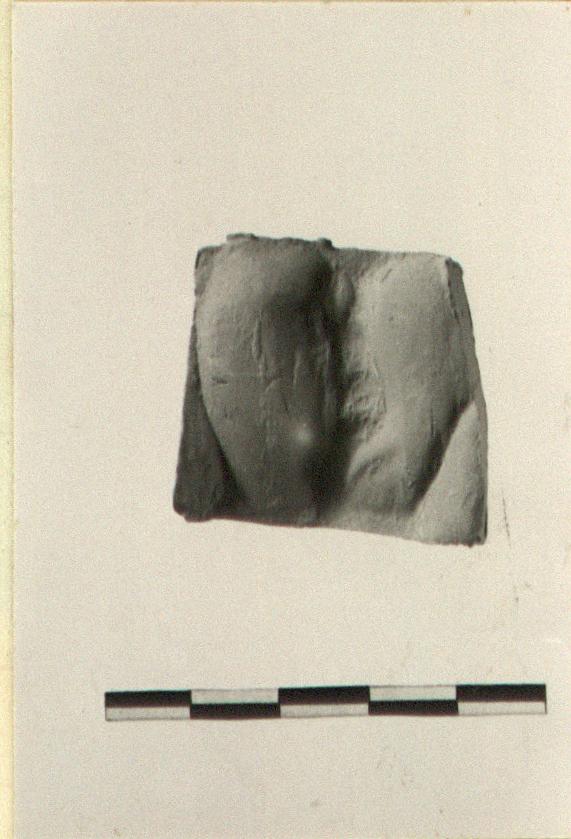 | Description: | Doubtful representation: legs of a child seated on animal (?). Broken all around. | |