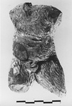 White slip and traces of red on one leg preservrd. Glaze on back.