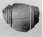 | Description: | Part of a barrel; four staves preserved and two rows of three hoops. Broken all around. No trace of glaze or paint. ADDENDA As T 727. | |