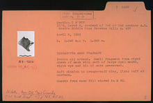 | Description: | Small fragment from right cheek of mask with part of large open mouth, right eye and bit of nose preserved. Soft pinkish to orange-buff clay, light buff at surface. ADDENDA Sherds from same fill stored in B 90. | |