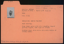 | Description: | From upper right side of a standing draped girlish figure, same type as T 1626. Back missing. Reddish clay, thin white slip with traces of creamy color. | |