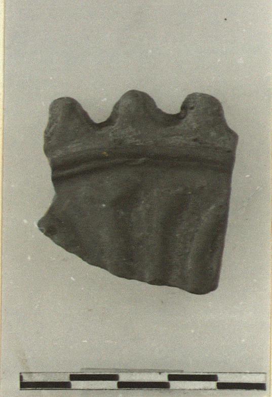 | Description: | From a disc. Decorated with relief palmettes and toothed edge. Cf. T 1700, Hesperia 21 (1952), p. 182. | |