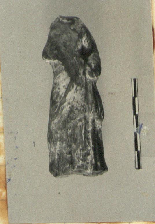 Description:   Intact except for head; surface broken over right shoulder, arm and bosom.