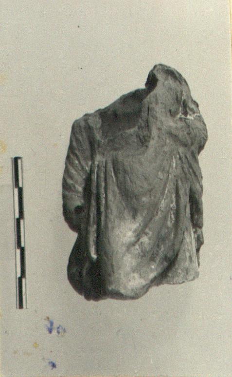 | Description: | Preserved is body from shoulder to hemline except part of chest and shoulder on right side and fragment of back hem. Similar to T 3812 and from same or related mould. Traces of white paint. Buff clay. | |
