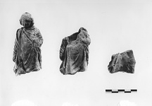 | Description: | Preserved is part of lower area of chlamys with right hand. Similar to T 3812 and from same or related mould. Traces of white paint. Buff clay. | |