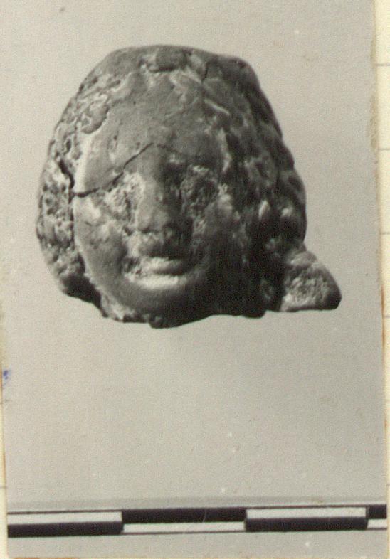 | Description: | Intact; crack across face. Similar to T 3814. Hat is missing but raised flat area on top of head is prepared for it. Traces of white paint. Buff clay. ADDENDA Damaged February 1972. | |