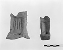 | Description: | Broken all around. A bit of lower surface preserved. Mold for lower legs and feet of heavily draped figure with feet protruding from drapery. Orange clay. Cf. T 4041, T 4042, T 4047, T 4048, T 4049. Cf. T 2002 for general type, not identical. ADDENDA Seated goddess; for mold for weak derivative of same series from the same context, see MC 1226. | |