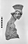 | Description: | Mended from three pieces. Part of top, front, back preserved. Mold represents frontal head wearing high polos or crown. Mold broken at jaw line and chin; most of hair missing. Back fairly smooth. Fabric: pinkish-yellow with slight gray core. ADDENDA RVN: Mold for plaque-protome of Athena. Joins with T 4102, T 4105, T 4116 and T 4119. From the same series as T 1579a,b. | |