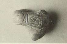 | Description: | Part of horse 's head. One side of head almost completely broken away; the left side is preserved as far as the back of the head. The bridle and the markings of hair, eyes and mouth are incised. Mould-made. Unglazed. Coarse, bright red clay. | |