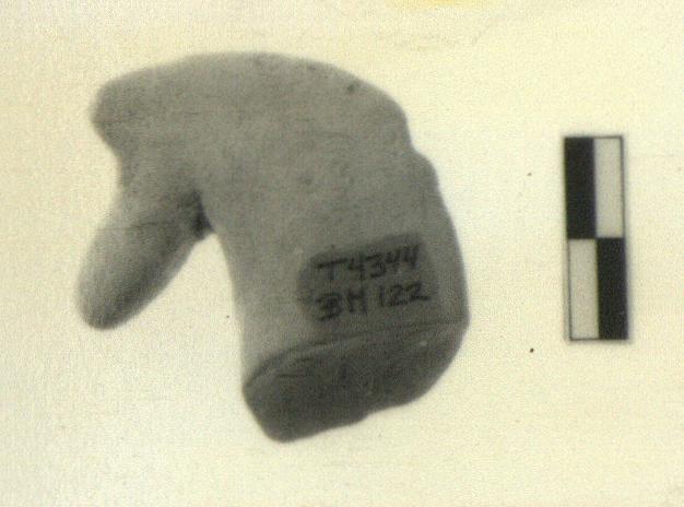 | Description: | Broken at base of neck, mane chipped. Horse's head, apparently cocked slightly to left. Traces of white slip. Buff-colored fabric, unglazed. | |