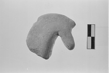 | Description: | Broken at base of neck, mane chipped. Horse's head, apparently cocked slightly to left. Traces of white slip. Buff-colored fabric, unglazed. | |